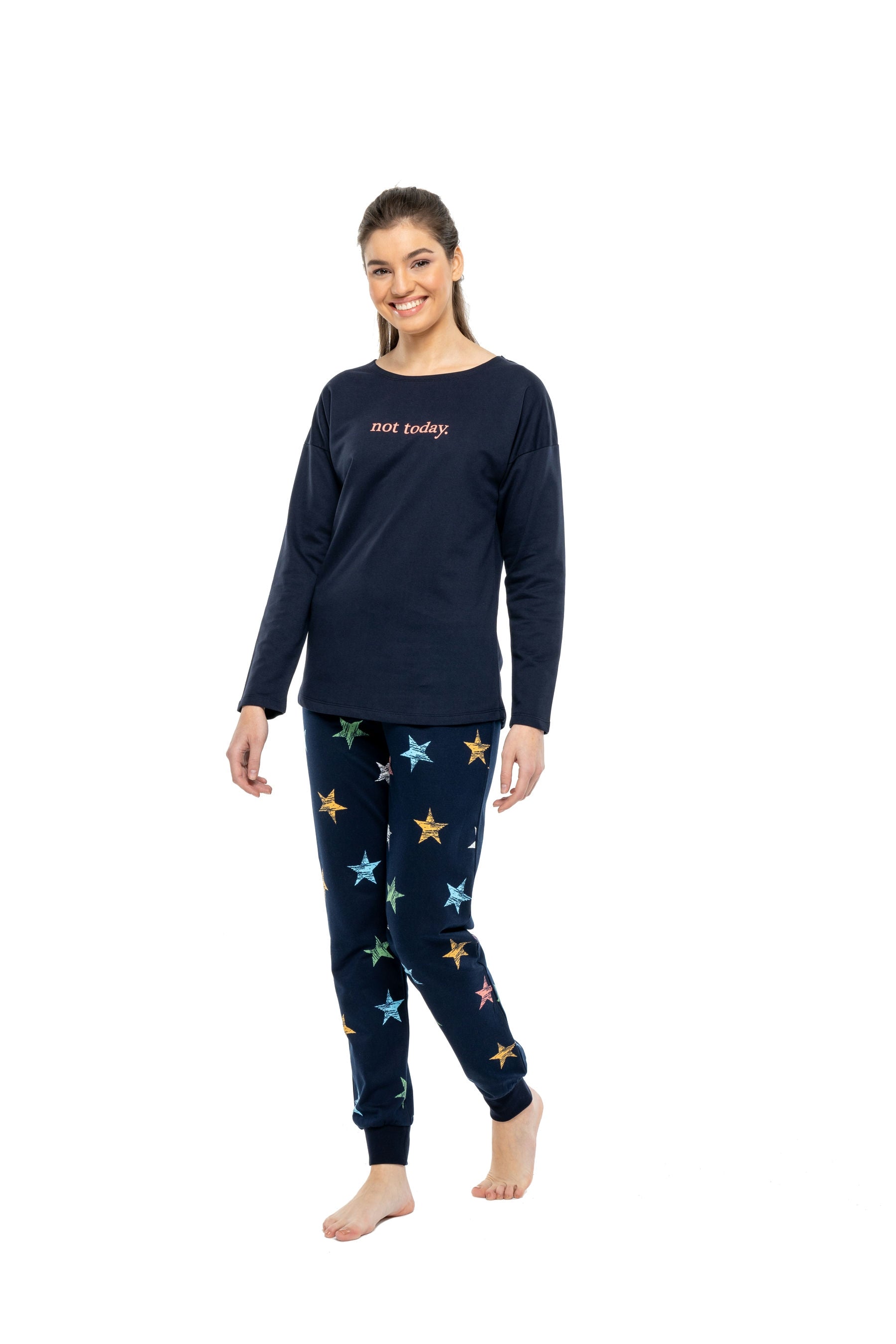 Relaxation never looked so chic with the MOD Women Round Neck Pajama Set in a stunning navy blue. Designed for comfort and style, this pajama set features a classic round neck that adds a touch of elegance to your nighttime routine. The soft, breathable fabric ensures you can unwind in luxury, whether you're lounging at home or enjoying a cozy night’s sleep. Perfect for any season, this versatile set is a must-have addition to your sleepwear collection. Elevate your evenings with MOD’s stylish pajamas—shop now and experience the perfect blend of comfort and fashion!